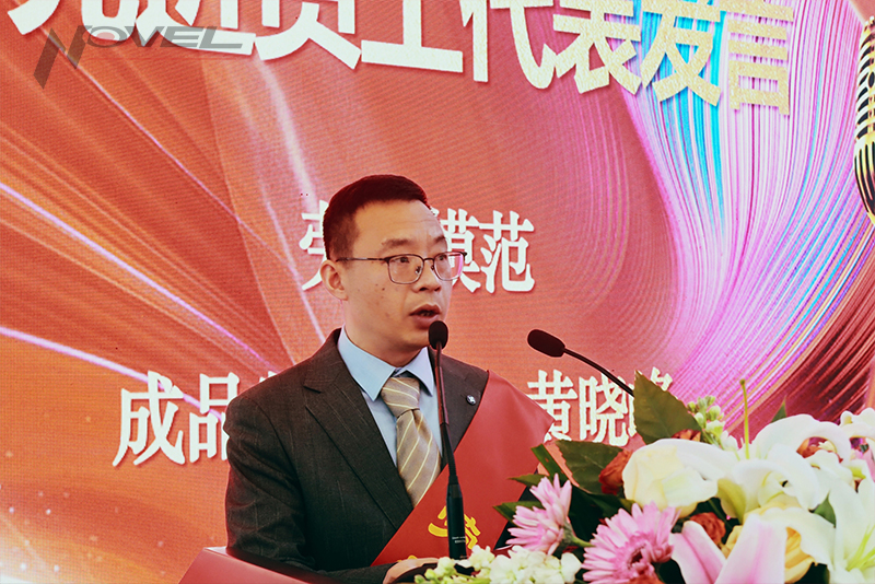 王長春副總經(jīng)理宣讀《2024年度先進(jìn)個(gè)人、先進(jìn)集體表彰決定》。各位先進(jìn)代表在平凡的工作崗位上,堅(jiān)持高標(biāo)準(zhǔn)嚴(yán)要求,兢兢業(yè)業(yè)完成本職工作,用智慧和汗水奮勇打拼,為永新發(fā)展匯聚出磅礴力量。勞動(dòng)模范、成品制造部黃曉峰代表受表彰的先進(jìn)員工發(fā)言。