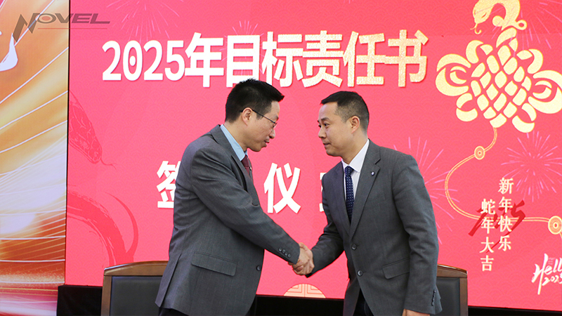 潘健總經(jīng)理與子公司總經(jīng)理、總部職能部門負(fù)責(zé)人簽訂2025年目標(biāo)責(zé)任書。新的一年,全體管理人員一致向前,緊盯全年目標(biāo)任務(wù),堅(jiān)定落實(shí)發(fā)展舉措,必將帶領(lǐng)各部協(xié)同、高效發(fā)展。廣州永新副總經(jīng)理吳箭宇代表發(fā)言。